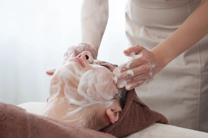お客様に安心して施術を受けていただくため、一連の流れを丁寧に説明いたします。お肌の状態を確認しながら、準備段階から施術後のケアまで、一つひとつの工程を大切に進めてまいります。メイク落としから始まり、お肌を保護した上で専門的なシェービングを行い、最後に保湿パックで潤いを補給するのが基本的な流れです。お客様が心地よい時間を過ごせるよう、心を込めて担当いたします。